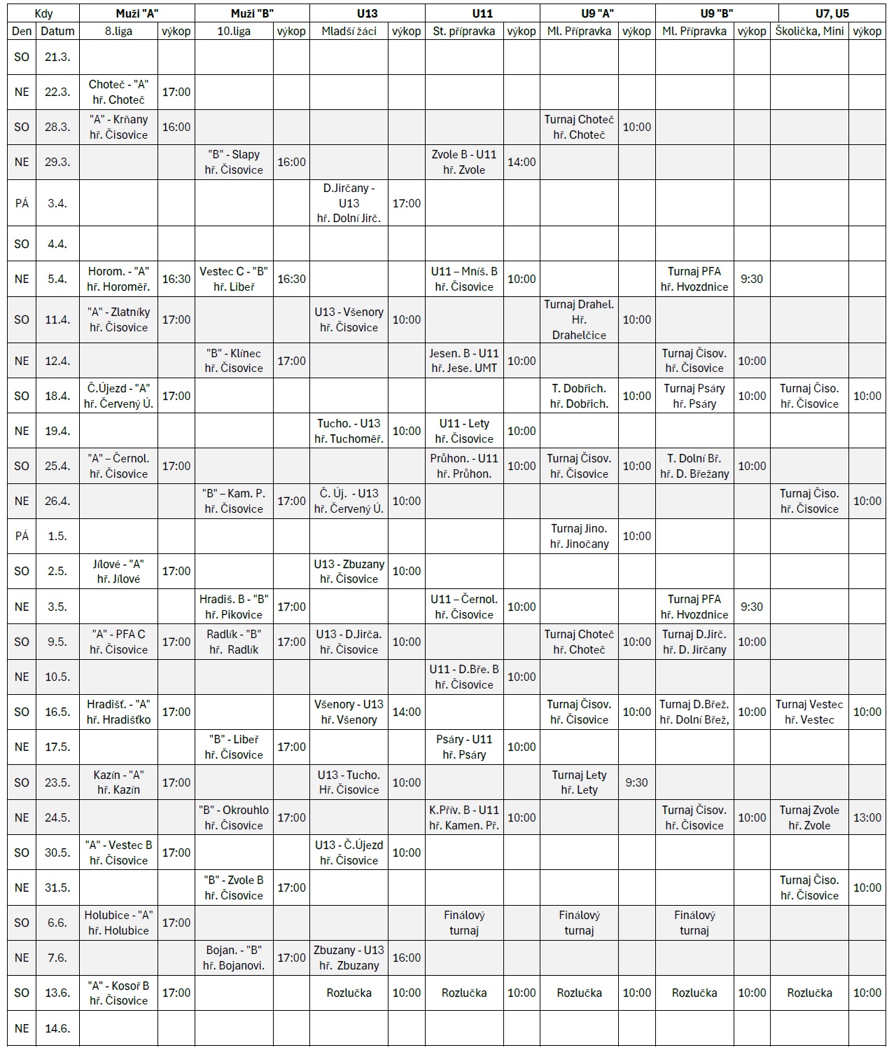 ⚫️⚪️ Rozpis zápasů Jaro 2026